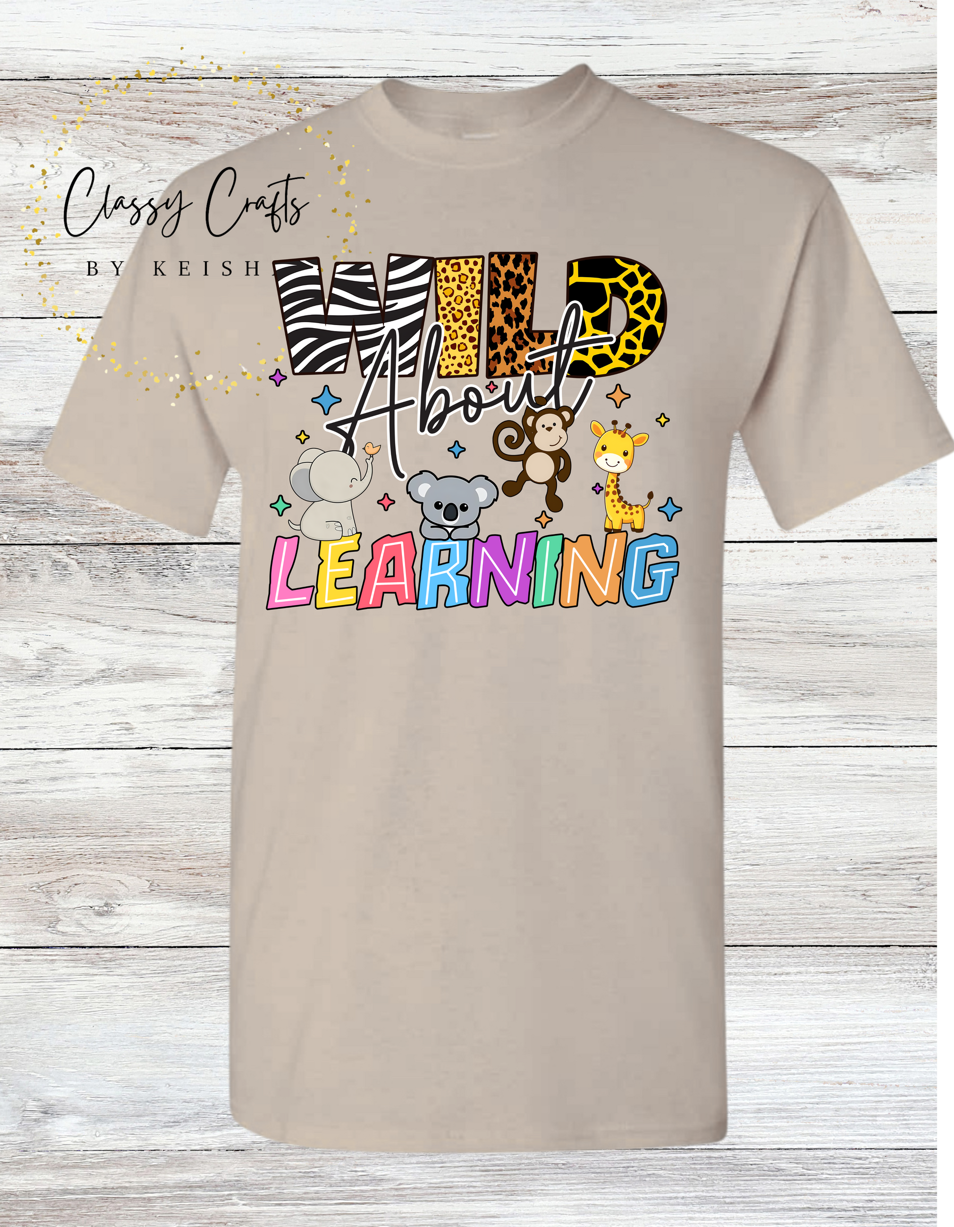Show your passion for teaching with our "Wild About Learning" graphic shirt! This shirt showcases a bold and fun design that conveys your love for educating young minds. Perfect for wearing to school or on casual days, it's comfortable and a great conversation starter. Join the community of teachers who are proud to show their enthusiasm for education!